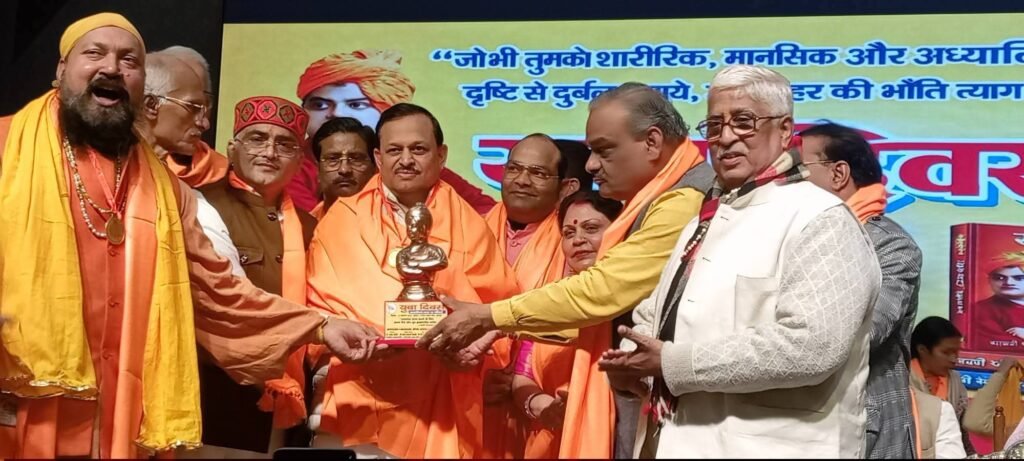 मुख्य अतिथि श्री रमेश अवस्थी ने अपने संबोधन में कहा कि स्वामी विवेकानंद जी ने सनातन धर्म और भारतीय संस्कृति की वैचारिक शक्ति को वैश्विक मंच पर स्थापित किया। उन्होंने युवाओं को आत्मनिर्भर, राष्ट्रनिष्ठ और कर्तव्यपरायण बनने की प्रेरणा दी। आगे उन्होंने कहा कि आज प्रधानमंत्री के दूरदर्शी नेतृत्व में भारत न केवल सांस्कृतिक रूप से पुनः गौरवशाली हुआ है, बल्कि आर्थिक रूप से भी विश्व की चौथी सबसे बड़ी अर्थव्यवस्था बनकर उभरा है। राम मंदिर निर्माण से लेकर वैश्विक जिम्मेदारियों के निर्वहन तक, यह परिवर्तन राष्ट्रवादी सोच और सांस्कृतिक चेतना का परिणाम है।