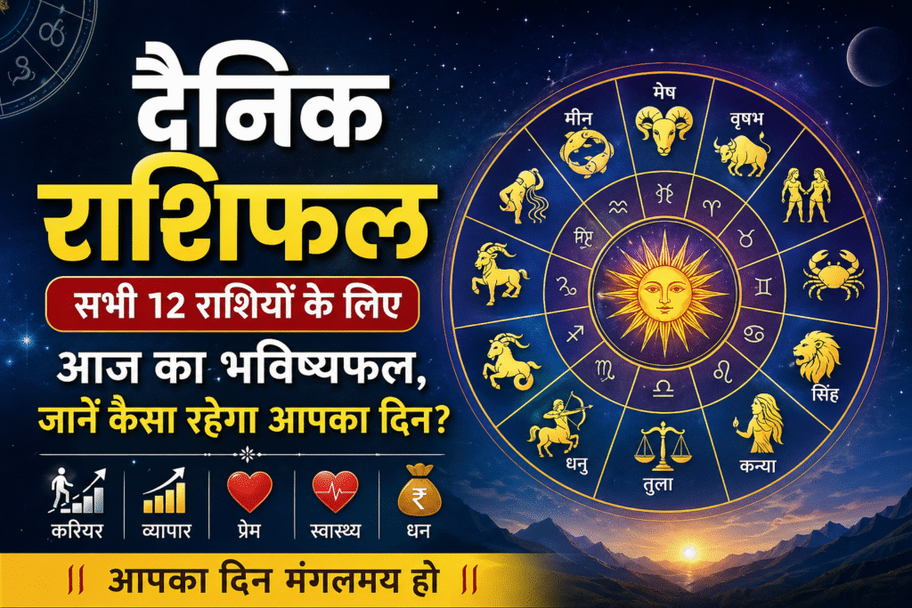 हर व्यक्ति अपने दिन की शुरुआत सकारात्मक ऊर्जा और उम्मीदों के साथ करना चाहता है। ऐसे में **आज का दैनिक राशिफल** आपको यह समझने में मदद करता है कि दिनभर की गतिविधियों में किस प्रकार सावधानी बरतनी है और किन अवसरों का लाभ उठाना है। ज्योतिष गणनाओं के आधार पर तैयार यह भविष्यफल आपके करियर, व्यापार, शिक्षा, स्वास्थ्य और पारिवारिक जीवन से जुड़े संकेत देता है। आइए जानते हैं सभी 12 राशियों का आज का हाल।