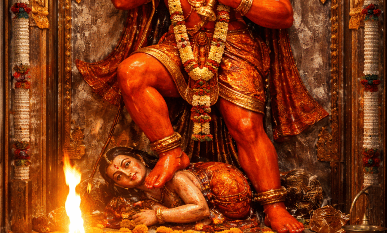 रामायण की कथा के अनुसार, जब हनुमान जी लक्ष्मण के प्राण बचाने के लिए संजीवनी बूटी लेने जा रहे थे, तब लंकिनी ने उन्हें रोकने का प्रयास किया। उस समय हनुमान जी ने उसे अपने पैरों के नीचे दबाकर आगे बढ़ने का मार्ग बनाया। उज्जैन के इस मंदिर में भक्तों को हनुमान जी के उसी स्वरूप के दर्शन होते हैं, जो इसे और भी विशिष्ट बनाता है।