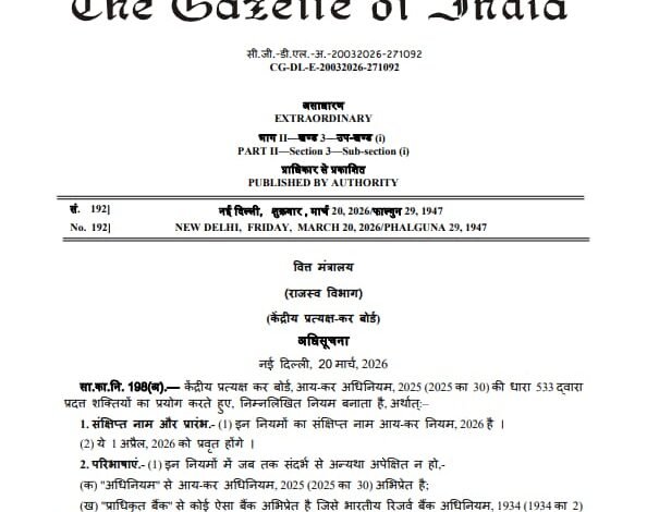 नई दिल्ली: Income Tax Department India ने Income Tax Rules, 2026 को आधिकारिक रूप से अधिसूचित कर दिया है। ये नियम ई-गजट में प्रकाशित किए गए हैं और 1 अप्रैल 2026 से लागू होंगे। सरकार ने स्पष्ट किया है कि यह कोई नया टैक्स नहीं है, बल्कि पहले से पारित आयकर कानून के तहत कार्यान्वयन (implementation) के नियम तय किए गए हैं।