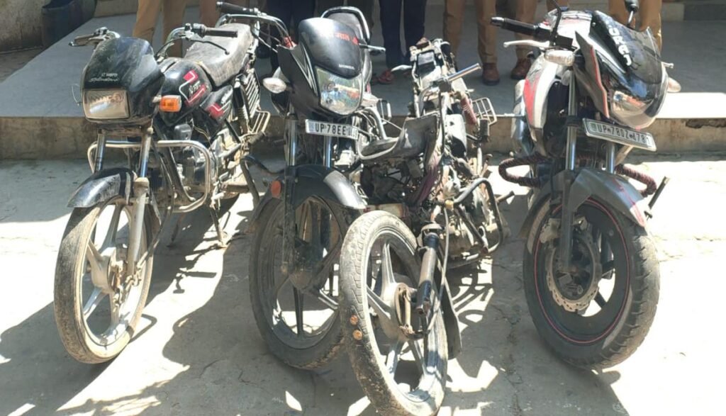 कानपुर: अपराध और अपराधियों के खिलाफ चलाए जा रहे अभियान के तहत बिठूर थाना पुलिस को एक महत्वपूर्ण सफलता हाथ लगी है। पुलिस ने अंतर्राज्यीय स्तर पर सक्रिय एक वाहन चोर गिरोह का पर्दाफाश करते हुए तीन शातिर अभियुक्तों को गिरफ्तार किया है। गिरफ्तार आरोपियों के पास से चोरी की मोटरसाइकिलें, नंबर प्लेट, एक मोबाइल फोन और नकदी बरामद की गई है।