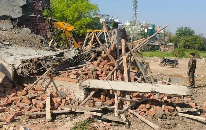 इस प्रकार तीन अलग-अलग साइटों पर इंट्रीगेट, रोड, नाला, बाउंड्री वॉल, बिजली के खंभे, पिलर और अधूरे/निर्माणाधीन भवन को 02 जेसीबी के माध्यम से ध्वस्त किया गया।