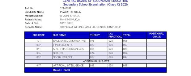 कानपुर के जवाहर नगर निवासी मनीष शुक्ला और शालिनी शुक्ला की बड़ी बेटी प्रगति शुक्ला ने हाल ही में सर पदमपत सिंघानिया एजुकेशन सेंटर से दसवीं की परीक्षा दी। इस दौरान उनकी मां शालिनी शुक्ला एक साल से स्पाइन की गंभीर बीमारी से जूझ रही थीं, जिससे उन्हें चलने-फिरने में भी मुश्किलें आ रही थीं। बावजूद इसके, प्रगति ने अपनी मां की देखभाल करते हुए और घर के सारे काम संभालते हुए अपनी पढ़ाई पर ध्यान केंद्रित किया।